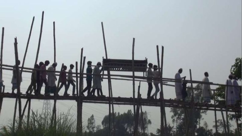 আলিরটেকে প্রতীকী লাশ নিয়ে সেতু নির্মাণের দাবিতে এল...